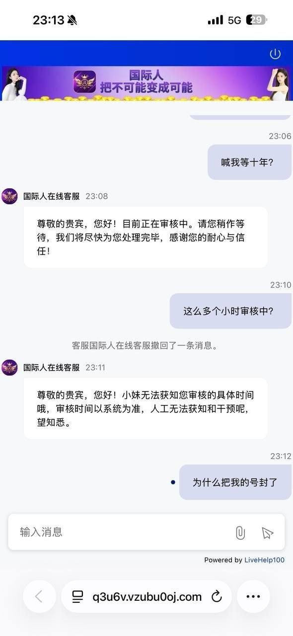 国际人黑平台曝光 充值1700元赢钱后提现被卡,注单异常审核拖延两天直接限制登录